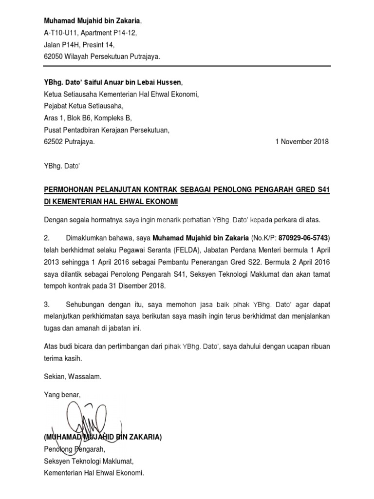 Contoh Surat Rasmi Permohonan Sambung Kontrak